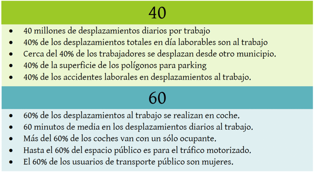 Es importante tener en cuenta la movilidad obligada, y más concretamente, la movilidad al trabajo, ya que esta movilidad presenta las siguientes cifras, nada desdeñables: