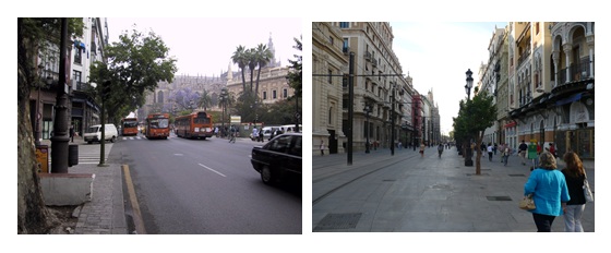 En la monumental ciudad de Sevilla, además de su famoso barrio árabe, Santa Cruz, de carácter turístico, reciente se procedió a peatonalizar dos importantes vías: